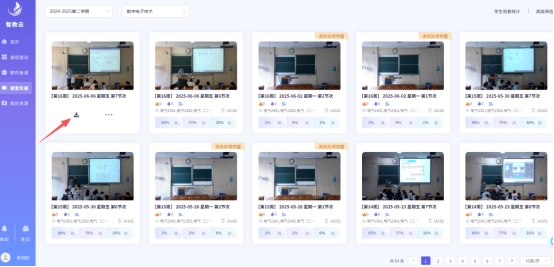 选择相应课程--鼠标放在缩略图上可显示下载图标,点击下载。