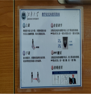 3. 教学楼服务站提供红外扩声话筒,有需要的老师可以课前提前到教学楼服务站持本人有效证件前往借用,用完后请及时归还。遗失或损坏照价赔偿。